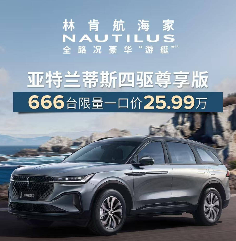 11月21日,在2025廣州車展上,林肯航海家亞特蘭蒂斯四驅尊享版正式上市,限量一口價25.99萬元,限量666臺。